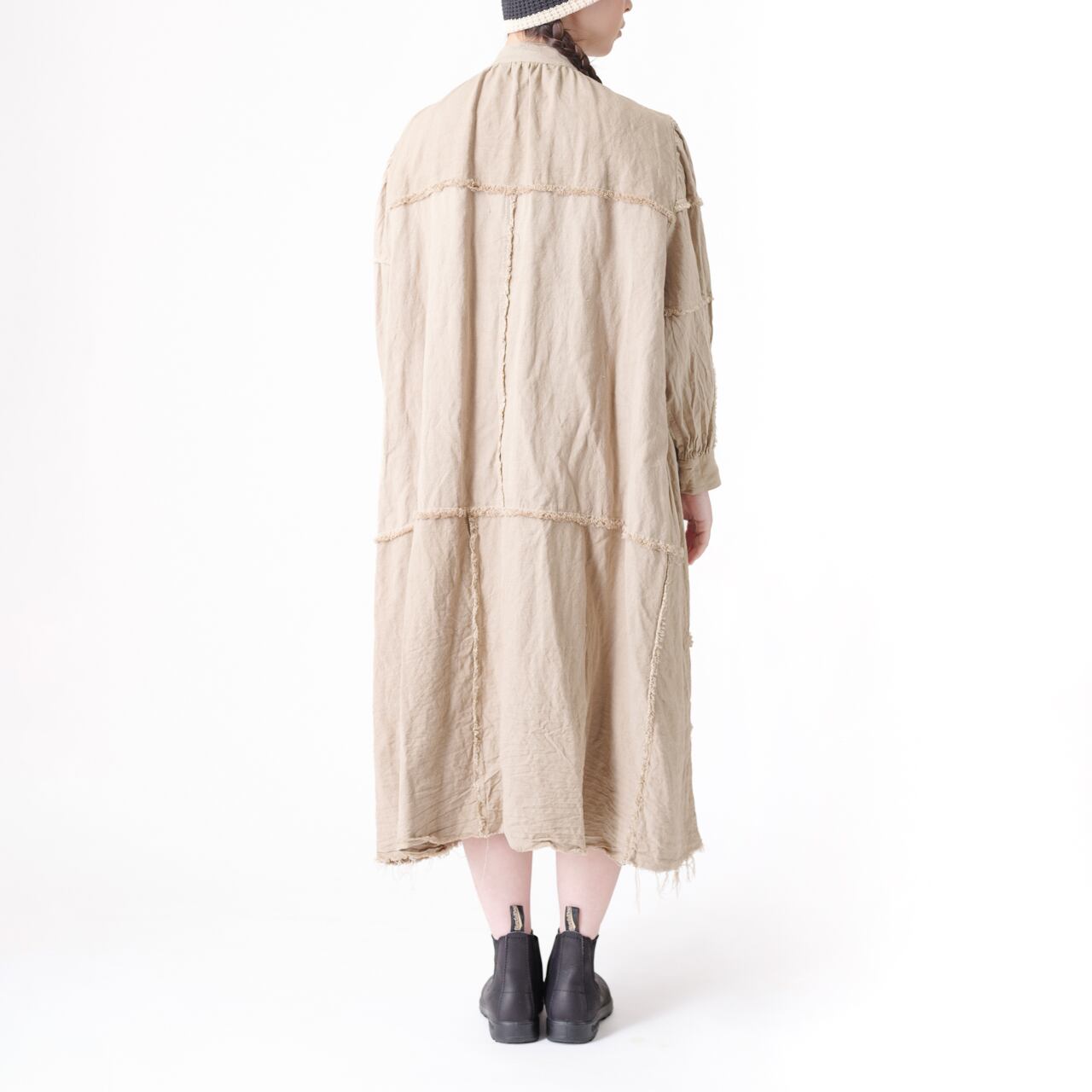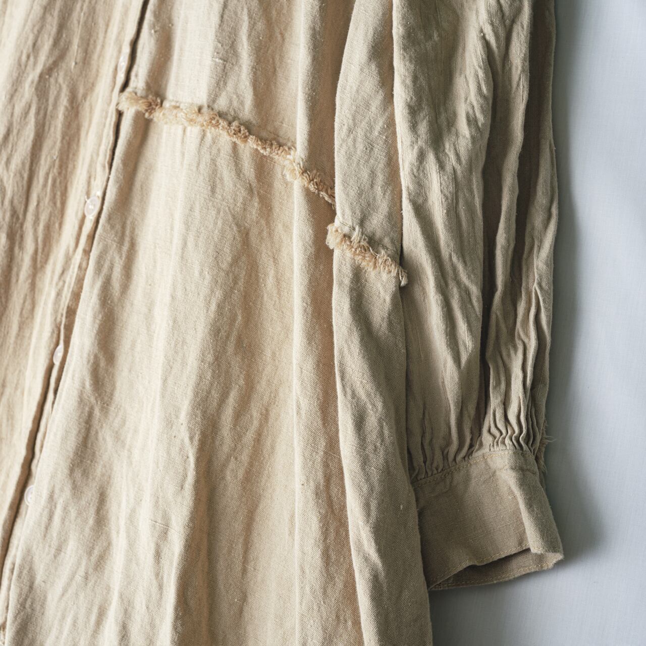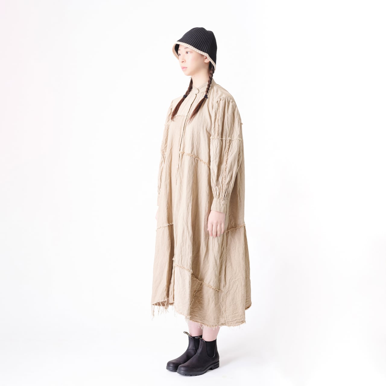 つぎはぎのニュアンスをそのままに、縫い合わせを表に、裾は切りっぱなしになっています。