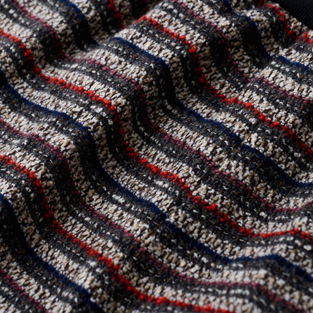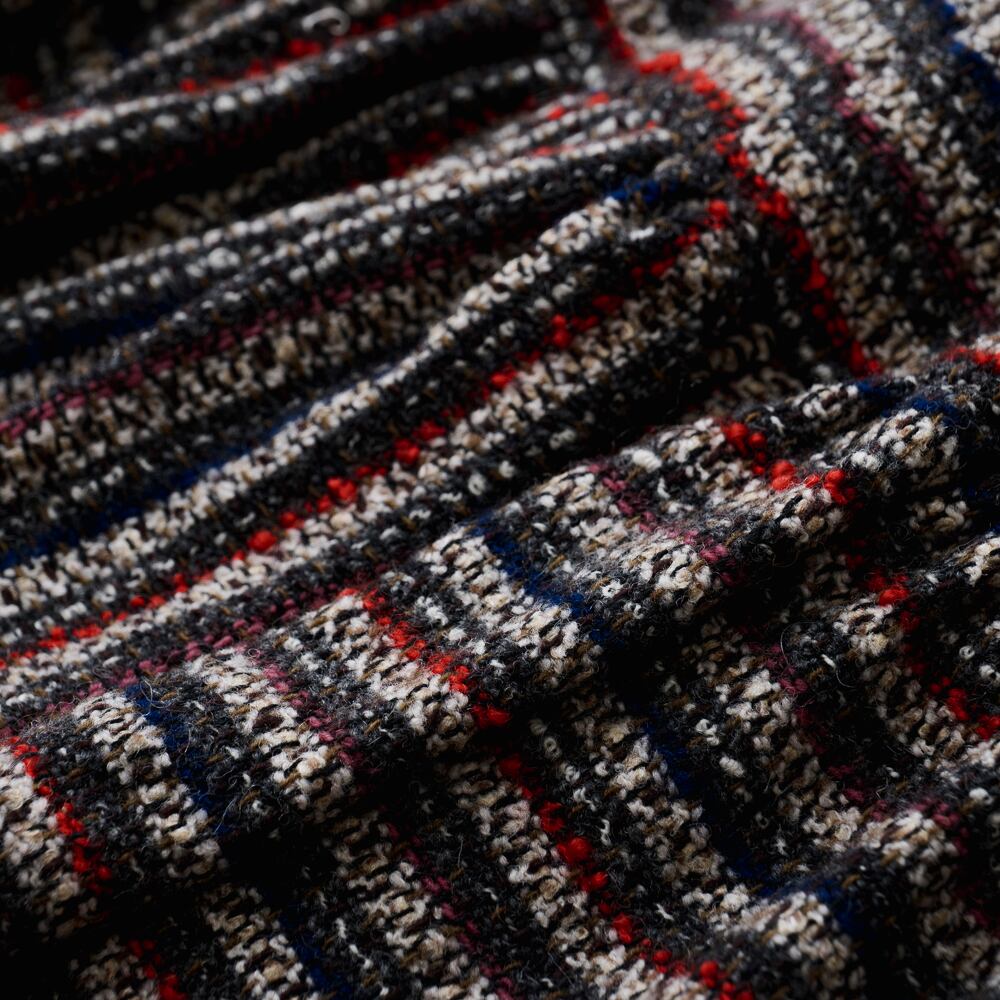 柄の強さと構造の柔らかさが同居した、印象的な一着です。
